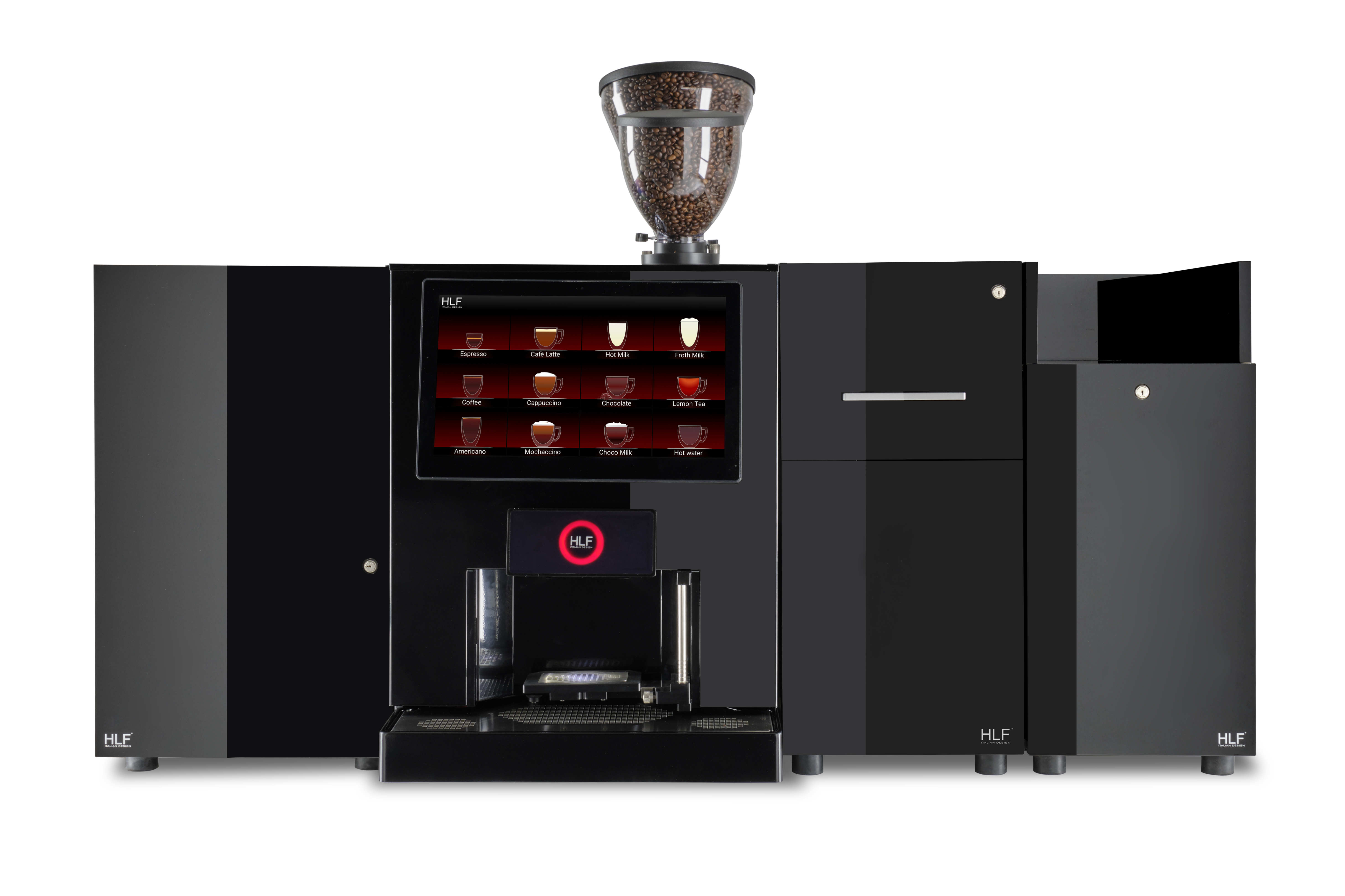 Preinstalowana aplikacja HLF umożliwia zdalne sterowanie maszyną i automatyczne generowanie raportów odnośnie ilości wydawanych napojów, błędach maszyny oraz szczegółowych danych serwisowych wraz ze stanem czyszczenia urządzenia.